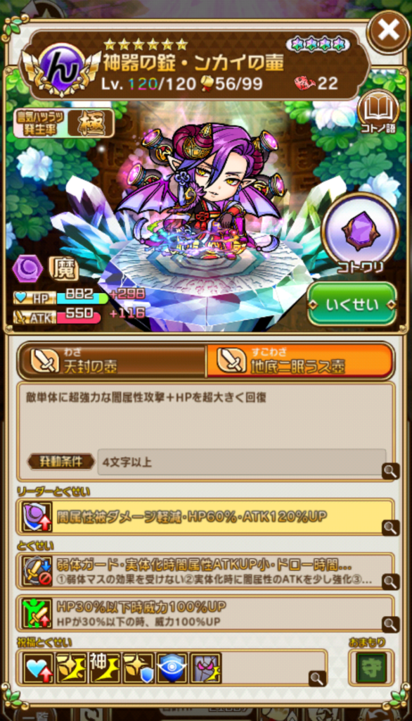 画像のンカイは、私の推しダマンの1体。画像にある情報を一覧にしたいと思いつつ、難しいからさぁ。わざとすごわざの名前と発動条件は盛り込みたい気持ちではいる。キャラの強化が入ったときに発動条件が変わったりするから面倒かなぁと思いつつ。わざの名前とかも好きなんだよねぇ。