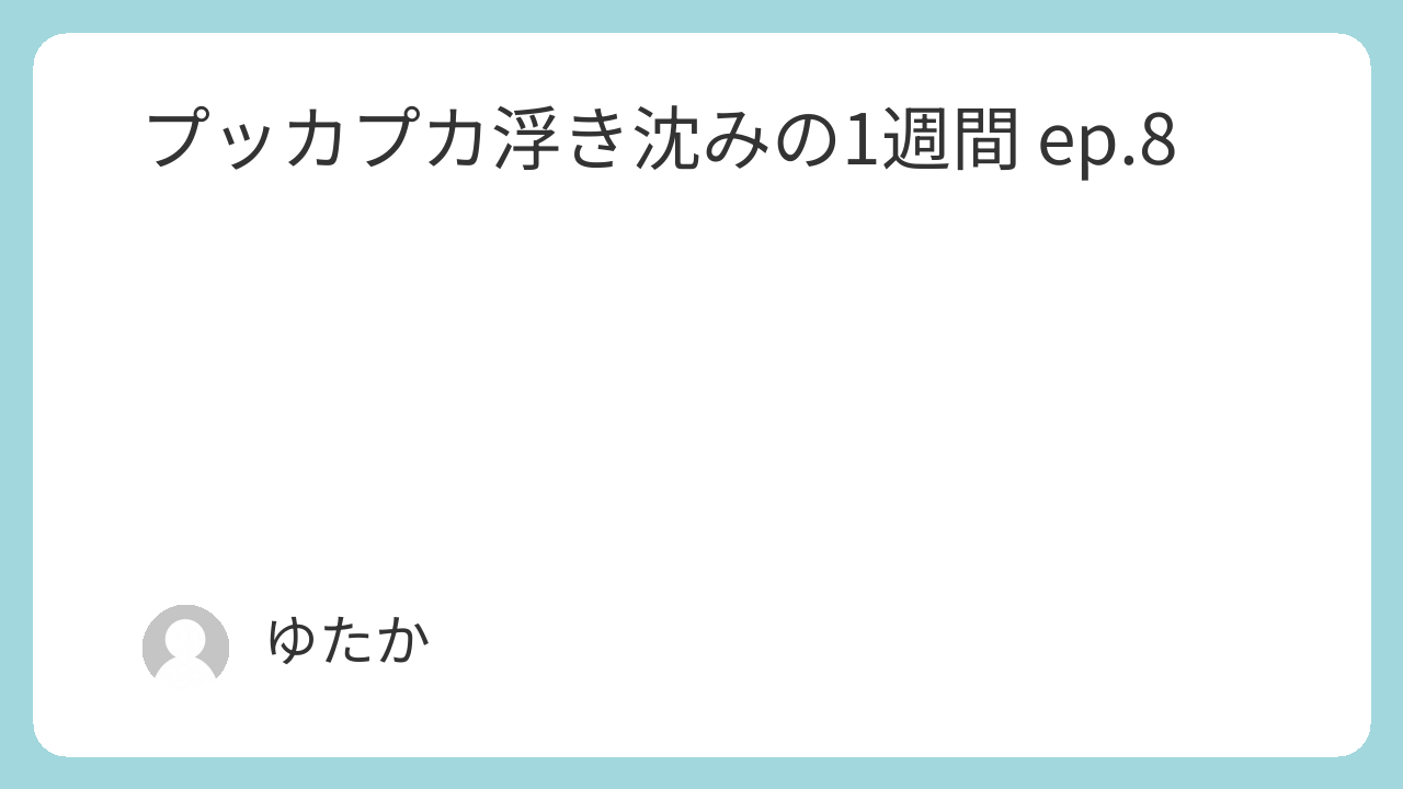 悪いほうにばかり考えが向かってしまう。「何をしても状況は良くならない」「私は誰の役にも立てていない」「私は何故生まれてしまったのか」とかね。 今週はちゃんと浮き沈みしてるじゃん・・・すごいじゃん・・・。プッカプカっすわ!!魚になろかな←